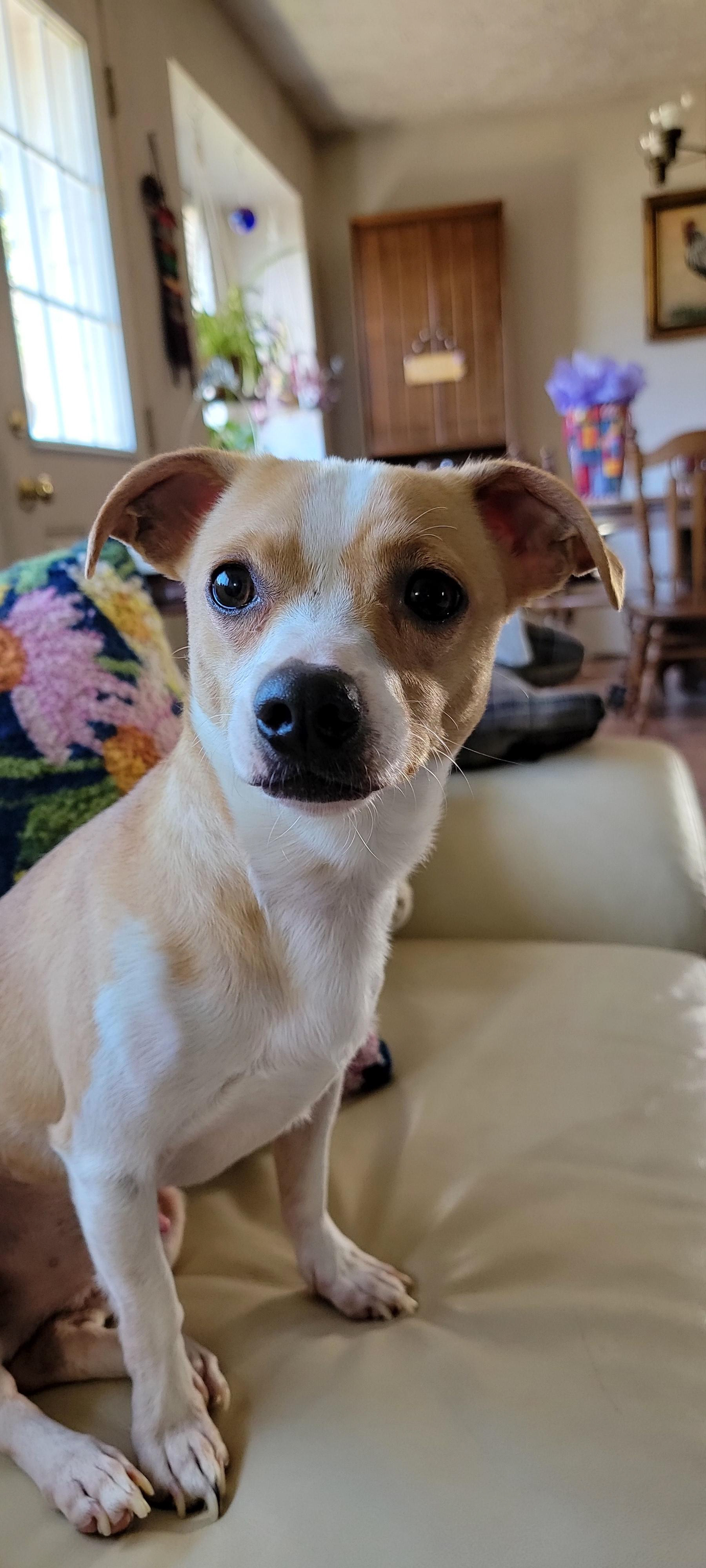 Meet Snickers! We brought him home on January 23, 2025, his adoption came through on the 27th..His is estimated to be around 2 years old..Chihuahua and Terrier mix..Snickers adds love, joy, cuteness to our lives :-)