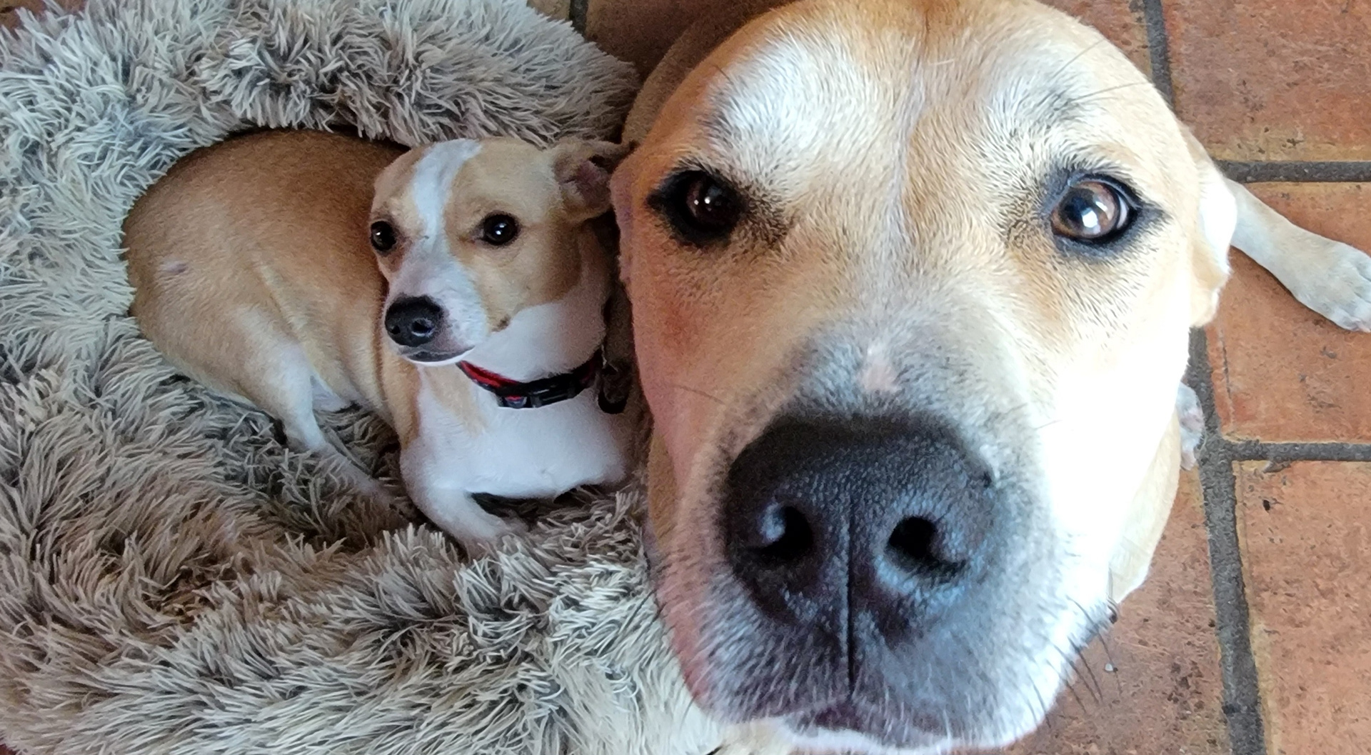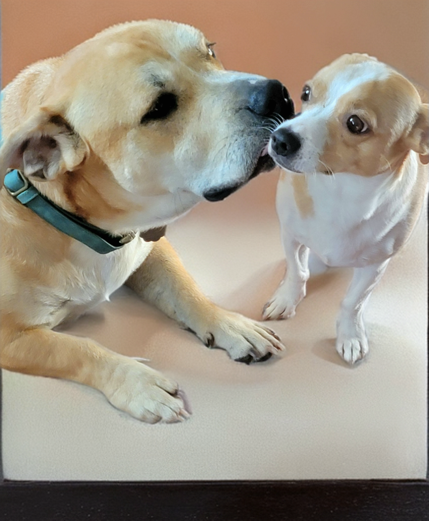 This big guy is younger than Snickers, but is mature beyond his years when interacting with people and other dogs..Chico is very gentle with Snickers..